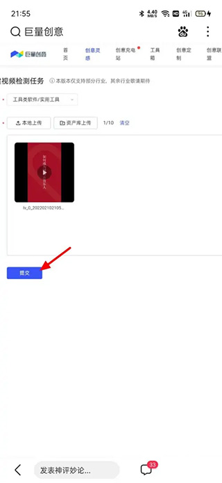 当视频文件上传完成后,点击页面下方的“提交”按钮。