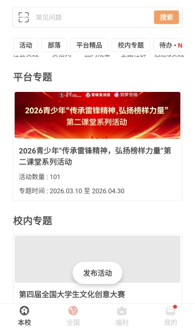 搭建团学组织专属社群阵地,便捷发布开展留存活动内容,全程完善学生综合素质档案数据。