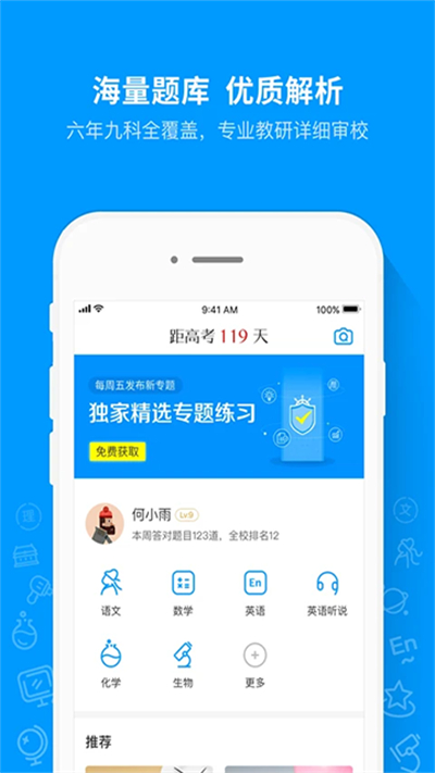 猿题库app是服务初高中学习的线上题库软件,囊括六个年级十一个学科的系统习题,试题源自重点初高中考试卷与各地高考真题,品质出众,平台专为高三学生规划复习方案,推出总复习模式,收录多年高考真题与模拟题,紧密贴合各省考试大纲与命题趋势,全程助力备考提升。