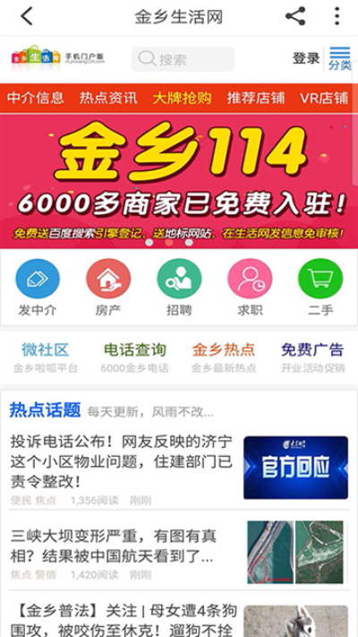 金乡生活网是一款服务金乡本地的综合性门户工具,涵盖房产中介招聘求职租赁论坛菜价交友等20多个栏目,每日更新海量民生资讯促销信息及专题内容,同步推送本地最新动态政府公告,支持参与论坛话题交友商家评选等多元互动。