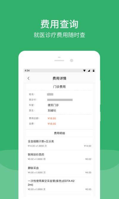 就诊过程中产生的所有费用,都可以在App里查到详细的清单,每一笔花销都清清楚楚,让你明明白白消费。