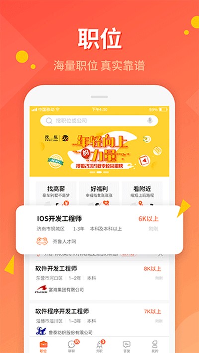 2、在首页上,你可以通过搜索或者浏览推荐,找到那个让你眼前一亮的公司或岗位。