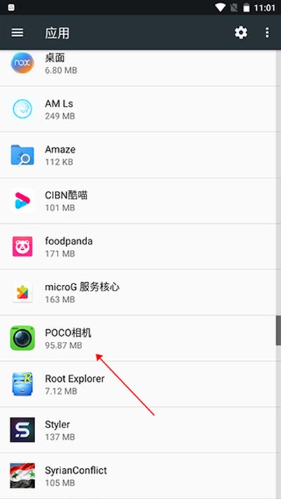 2、进入应用列表后,上下滑动,找到并点击“POCO相机”。