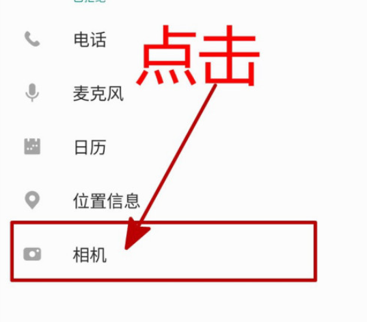 在权限管理页面里,找到列表中的“相机”选项,然后点击进入。