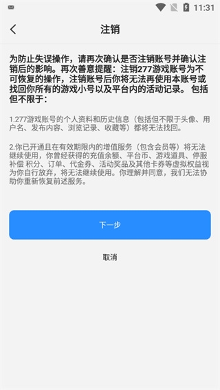 5、在进行下一步之前,请先仔细阅读注销协议,确认无误后点击“下一步”。