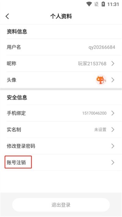 4、在弹出的菜单里找到“账号注销”这个选项,然后点击它。