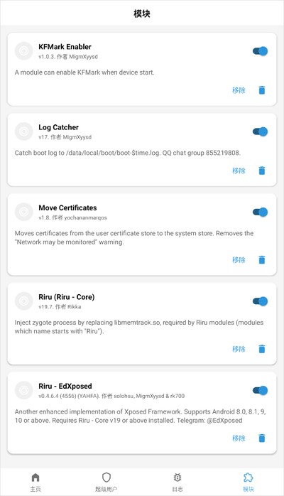 - 随时启用、禁用或者直接删掉已经安装的面具模块。