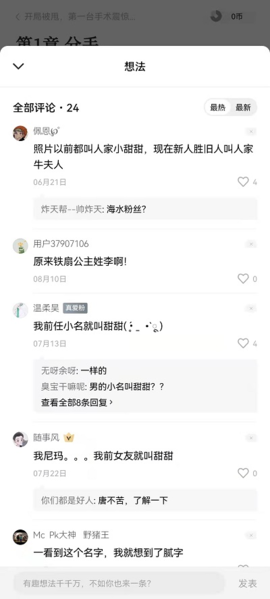 4、当你看到小说段落里的评论时,直接点击那条评论,就会弹出一个窗口,在这里你可以看到完整的评论内容,也可以发表自己的看法。
