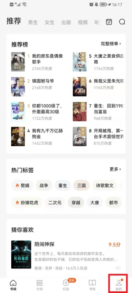1、首先打开番茄小说app,在主界面的右下角找到并点击【我的】选项,进入个人中心页面。