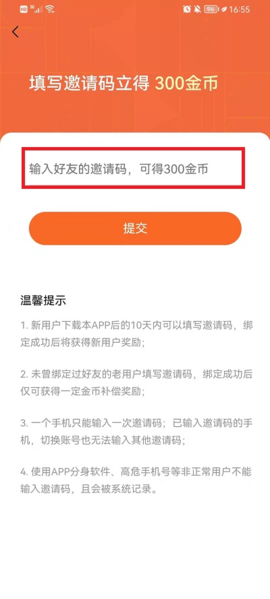 3、在邀请码填写页面,将你朋友给你的邀请码准确输入到框内,然后点击下方的提交按钮就大功告成了。