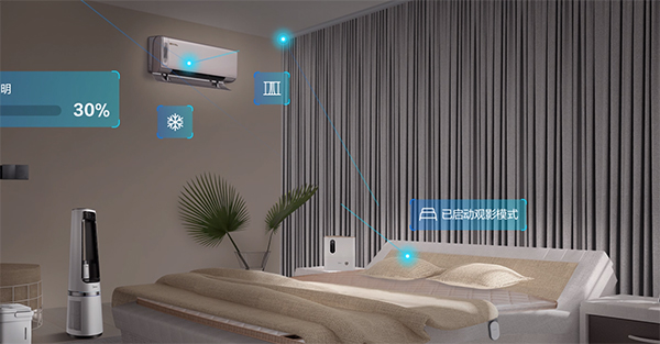 通过窗帘、小美音箱、空调、空气净化器等智能家电的联动,打造舒适的清晨起床氛围。