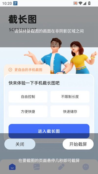 2.进入应用主界面后,你会看到几个核心功能选项,找到并点击那个专门用来制作长截图的入口,通常会标记为“截长图”或者类似的字样。