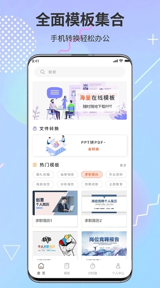 2、这款应用充分考虑到了不同用户的专业化需求,其模板库的设计能够满足各行各业、不同工作岗位对PPT的特定要求。不管你是市场专员、项目经理还是在校学生,都可以在这里放心地筛选查找,找到最贴合你身份和使用场景的模板。