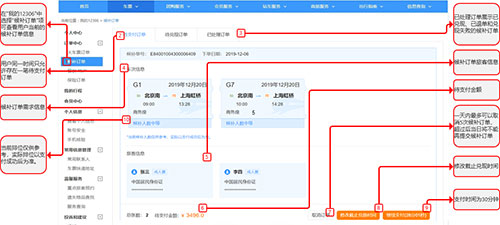 每一位用户最多可以提交两个候补订单。在每个订单里,可以添加两个相邻的乘车日期,这两个日期的出发站和到达站必须相同(但可以是同一城市的不同车站)。对于每一个选定的乘车日期,最多可以添加五个由“车次+席别”构成的不同组合。