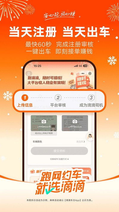 加入门槛非常低,无论你名下是否有车,只要持有驾照,就可以免费注册成为一名滴滴司机。