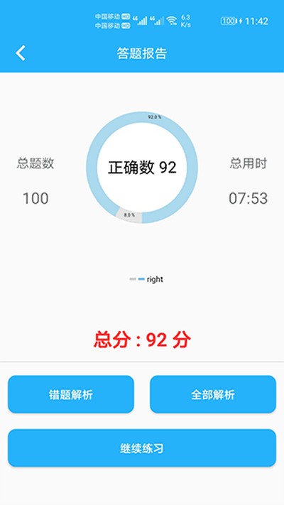 5、用户也能随时查看自己的答题报告,对自己的答题质量和学习进度有一个清晰的了解。