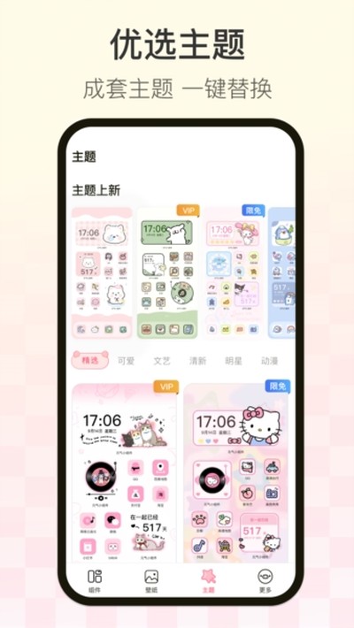 2、一张出彩的壁纸如果能搭配上协调的主题,视觉效果会更上一层楼。应用里为你准备了超多不同风格的免费主题资源,可以尽情搭配。