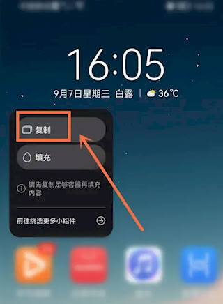 3、设置好之后回到手机桌面,长按屏幕,然后点击屏幕上方的“复制”选项。