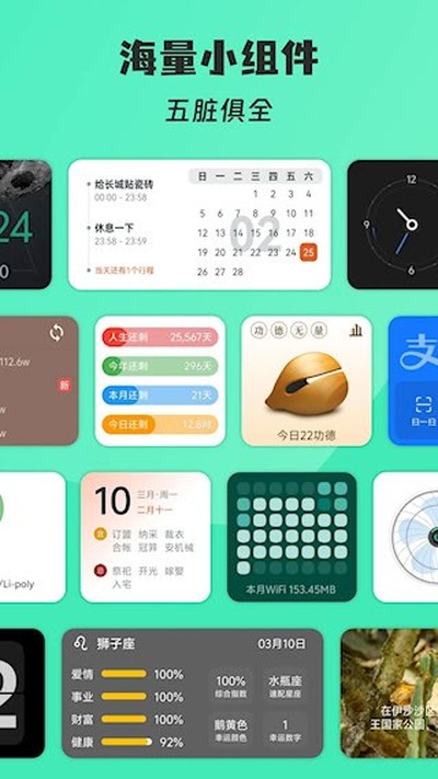 想让你的安卓手机桌面变得独一无二吗?试试万象小组件吧!这里有海量桌面小工具,从电量条、天气预报到情侣共享的纪念日提醒,应有尽有。它强大的壁纸DIY功能,让你能用丰富的素材库创作专属壁纸。更酷的是,你还可以在锁屏上添加快捷启动和可爱动图,让每次解锁都充满惊喜!