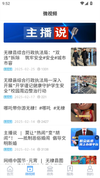 2、切换到微视频界面后,我们可以在这里观看到许多来自本地拍摄的新闻短片。