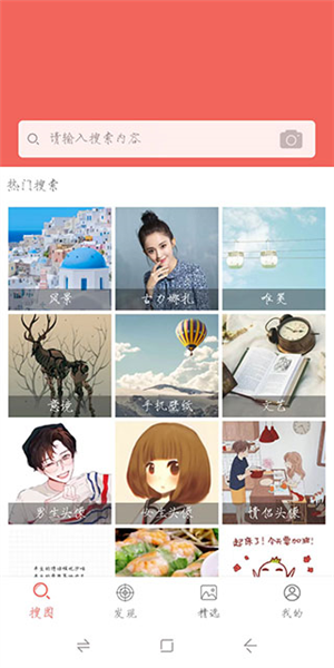 2、点击顶部的搜索栏并输入关键词,就能立刻开始搜索你想要的图片资源。