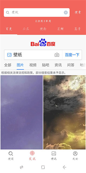 4、此外,在你进行搜索时,这款搜图应用还能为你链接到优质、专辑、搜狗、百度、360、必应这六大资源库中,拓宽你的选择范围。