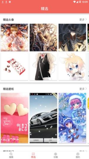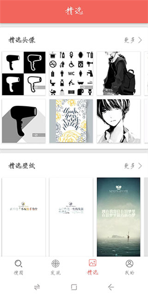 5、在主界面的“精选”板块,你可以快速进入头像、壁纸和热门图片的专门区域进行查找。