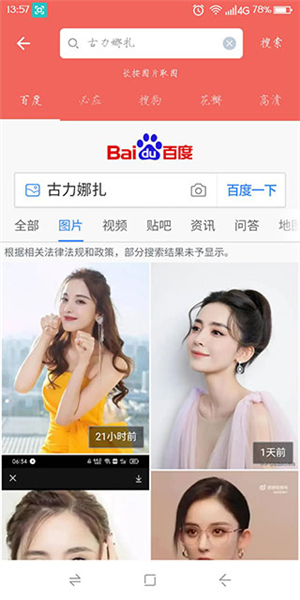 4、举个例子,如果我们想找古力娜扎的照片,只需搜索她的名字,马上就能看到海量的相关图片。