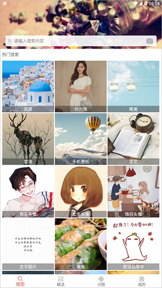 这里简直是图片的天堂,你想找什么样的图几乎都有。从迷人的风景照、养眼的美女图,到充满意境的唯美图、文艺范儿的手机壁纸,甚至是带有文字或关于美食的图片,应有尽有。