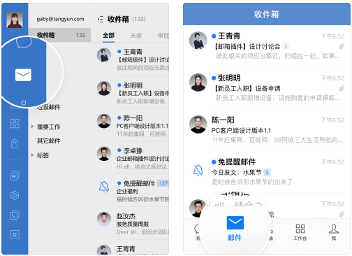 1、 新邮件会实时推送通知,让你不会错过任何重要工作信息,随时随地都能处理邮件。你还可以对邮件进行分组管理,或者为特定的发件人、文件夹设置个性化的新邮件提醒规则。