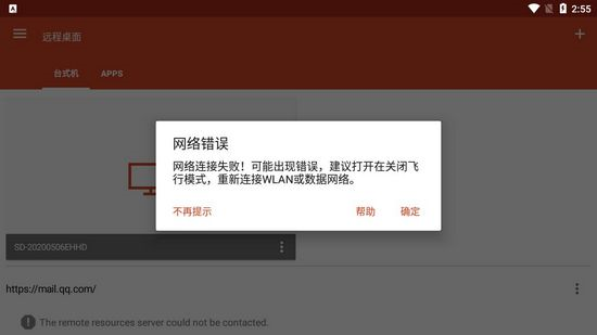 连接配置时,所填写的IP地址或计算机名存在错误。。这玩意一个字母一个点都不能错,回去仔细对一遍。