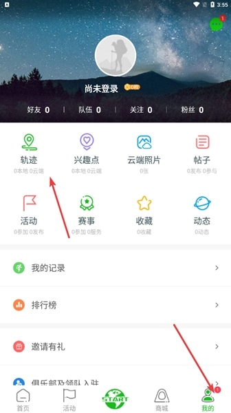 1. 先在主界面点右下角的“我的”,进入个人中心,然后找到那个“轨迹”选项。