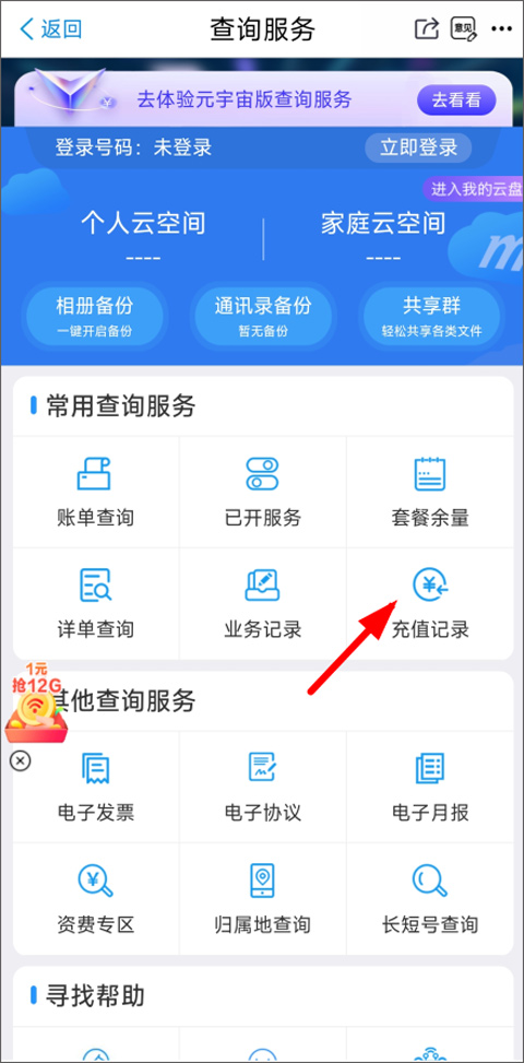 2、进入查询业务的汇总页面后,在“常用查询服务”这个栏目下面,就能很容易地看到“充值记录”的选项了。