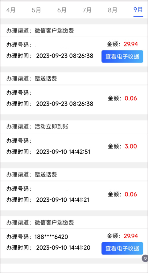 3、点进去之后,你所有的充值历史就都展现在眼前了。你可以清楚地看到每个月的具体充值时间和对应的金额,账目一清二楚。