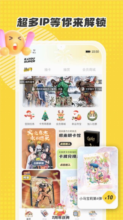 2, 正版卡牌与周边任你选:在这里,你能找到海量的官方授权卡牌和精美周边。快来试试你的手气,把你喜欢的IP角色带回家,说不定还能意外抽中人人羡慕的稀有款式呢!