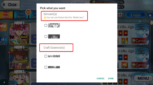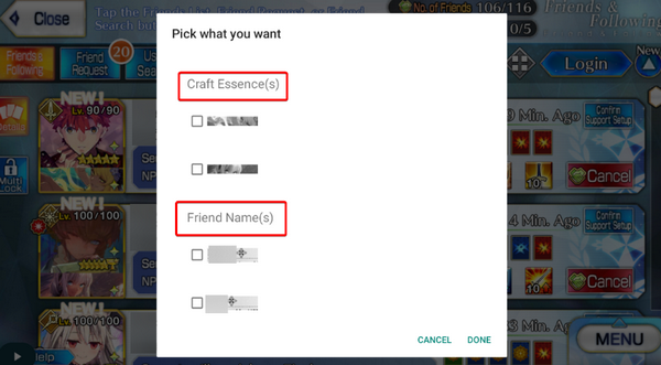 然后打开FGO游戏。接着,进入到选择助战或者好友列表的界面,并确保你想要识别的从者或概念礼装完整地显示在屏幕上(关键是要让整个从者+礼装的区域都清晰可见)。