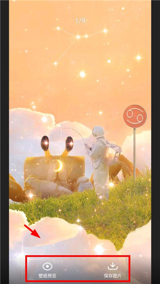 4、在海量资源中找到心仪的图片后,就可以进行设置了,应用也支持预览和保存图片到本地。