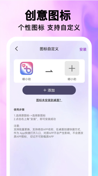 5、最后一步,点击【安装】按钮。这时软件会请求获取创建桌面快捷方式的权限,授权之后,你就能在桌面上看到全新的图标了。