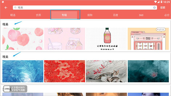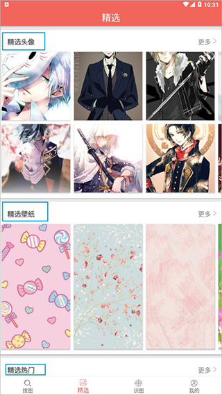 5、回到主界面,精选那一栏给你预设了几个热门分类,懒得打字就直接点头像、壁纸这些进去逛。