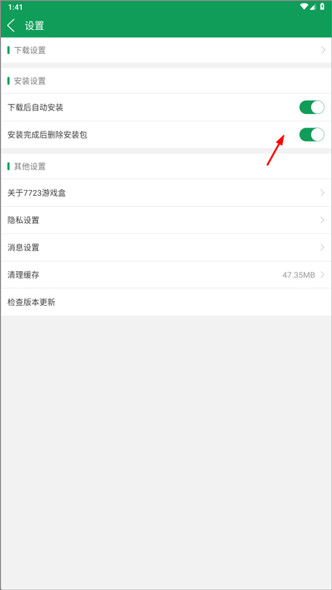 2、在设置列表里,你会看到一个叫“安装完成后删除安装包”的选项,把后面那个开关给它打开就行了。
