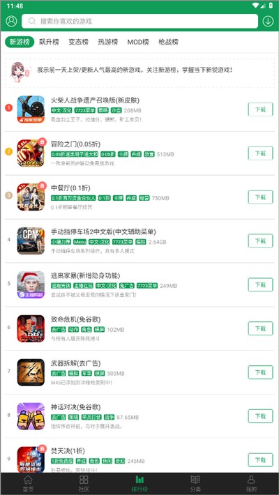 【海量游戏独家首发】每天都会第一时间上架新游戏,分类、专题和推荐都做得挺全的,资源又多又新。