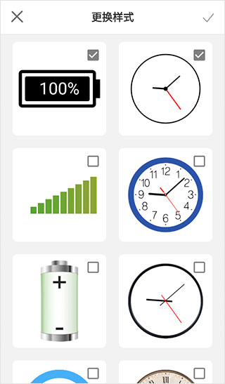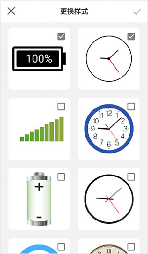 4、点进“更换样式”,里面花里胡哨的选择还不少,什么闹钟、电池条、表格图标,看你喜欢哪个就用哪个。