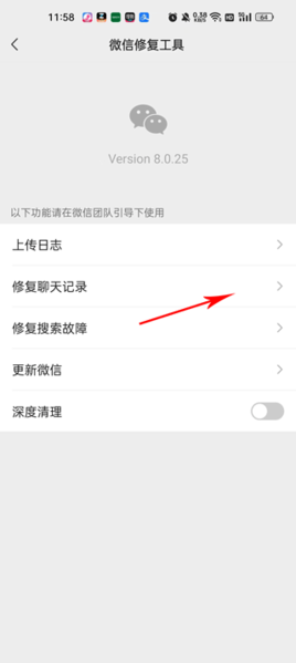 4、在弹出的修复工具界面里,直接点击“修复聊天记录”就行了。