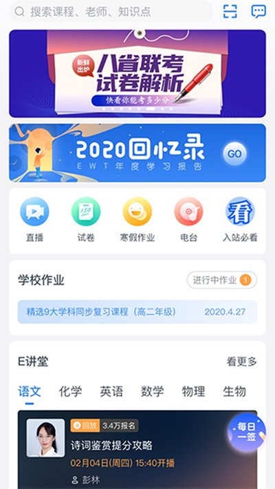 3、接着即可看到其中为用户们提供了语数英、物化生、史地生等科目。