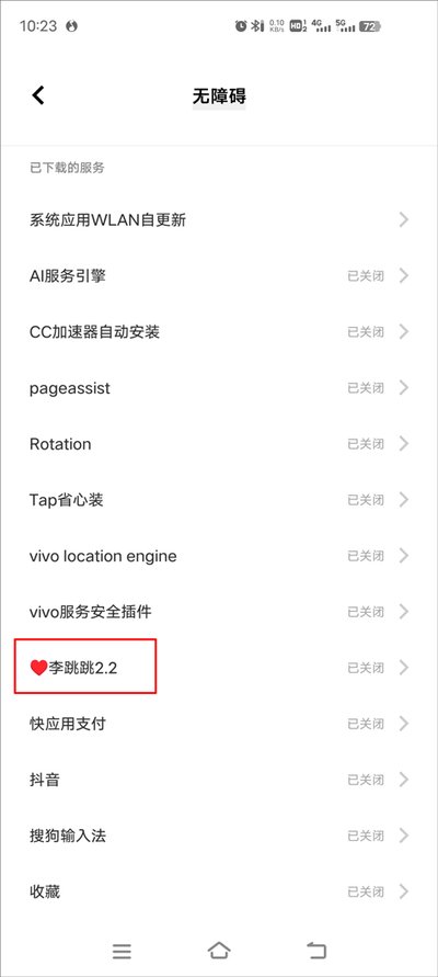 2、系统会让你去开无障碍服务,在列表里找到“李跳跳”。
