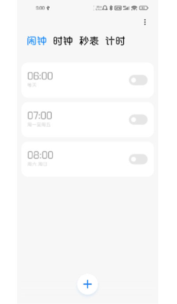 2、闹钟功能也挺全,能设置常规闹钟,支持按周重复。