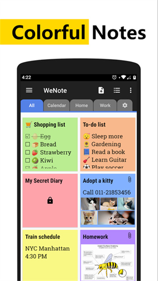 1、记事方式丰富,除了文字输入也能够用于清单记录、录音讲解、图片展示和手写练字等,平时记灵感、记会议或者是记日常杂事都可以更方便;