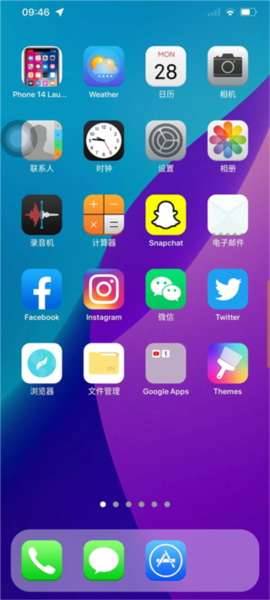 6、想换主题和壁纸的话,在桌面上找到那个叫“主题”的App,点进去就是海量的iPhone主题壁纸库。