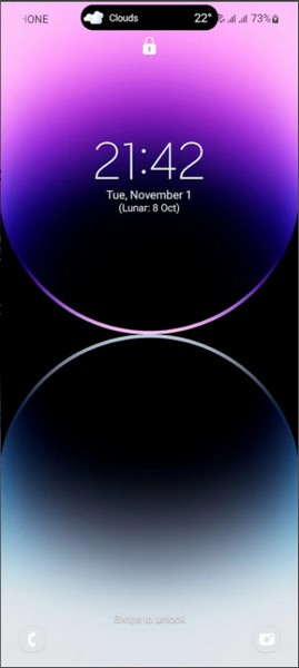 1、安装并运行这款应用后,并不会改变你手机系统的底层,它只是巧妙地在系统界面顶端增加了一个灵动岛的视觉元素。