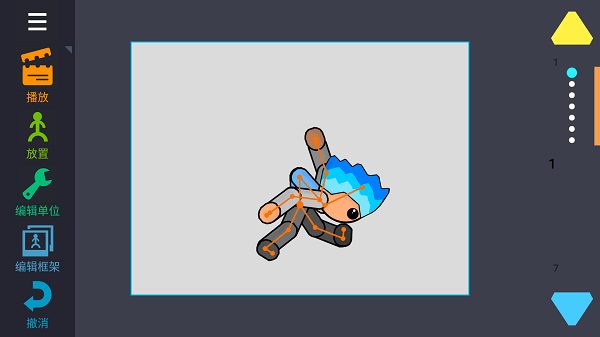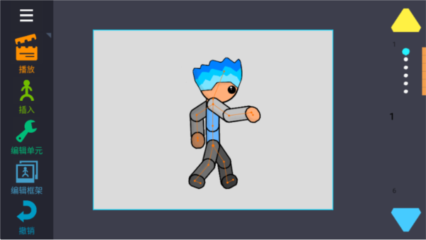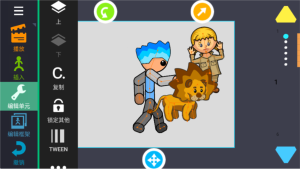 1、手残党福音来了,用这个做动画你都不用自己一笔一笔画,只要拖动模型的骨骼摆pose就行。大家看截图,点屏幕上面那个绿色小人,就能打开模型库。然后点模型的骨骼节点,就能让他摆出各种姿势。姿势摆好后,点下面那个箭头就等于翻到下一页画纸,开始做下一帧。